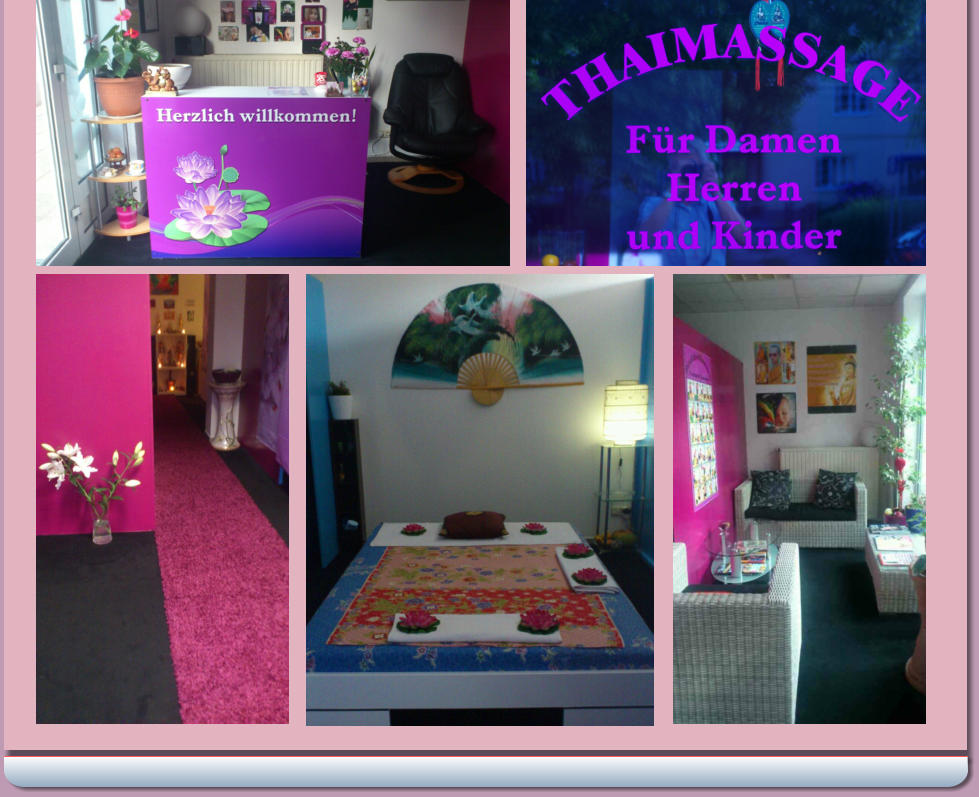 Willkommen bei Dork Bour StudioWir sind Familie Penke und begrüßen Sie ganz herzlich mit“SAWASDEE KHA”wie es in meiner thailändischen Heimat üblich ist.Hier in unserem traditionelle Thaimassage - Studio bieten wir Ihnen neun verschiedene Massage wie Ganzkörper-, Aromaölmassage, Peelinggelmassage an.Unsere Öffnungszeiten sind:Montag von 14.30 bis 20.00 UhrDienstag bis Sonntag von 10.00 bis 20.00 UhrMassagen sind nur nach terminlicher Vereinba-rung möglich! Wir verkaufen keinen Gutschein.Termine werden nur im Laden zwischen 13.00 und 14.30 Uhr vergeben. Anzahlung ist erforderlich!Wir werden uns freuen, wenn wir zu Ihrem Wohlbefinden beitragen können. Familie Penke